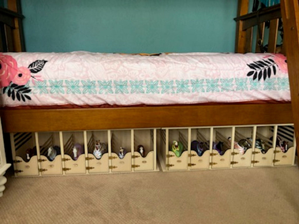 Horse Stable with 3 box stalls for your breyer horses. The larger stalls will fit most Traditional and classic size breyers. The Barns are stackable and keep your Breyer horses nice and cozy. The barn is 32” x 11.5” x 11”.